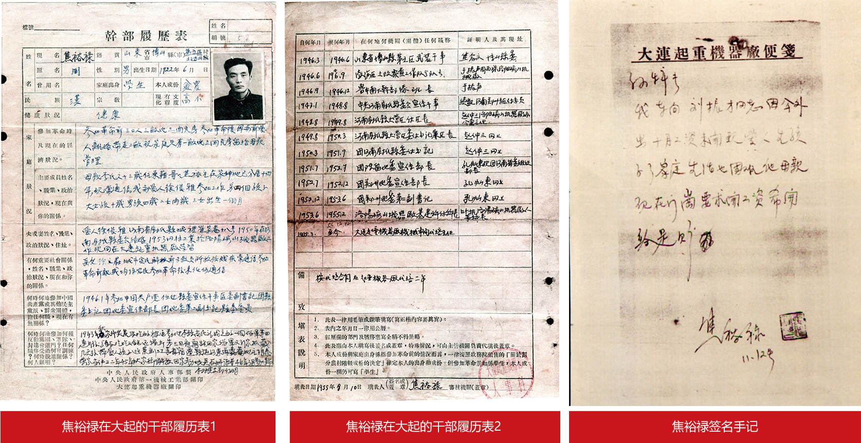 1953年6月,焦裕禄响应党的号召,调到洛阳矿山机器厂参加工业建设,担任过车间主任、科长。