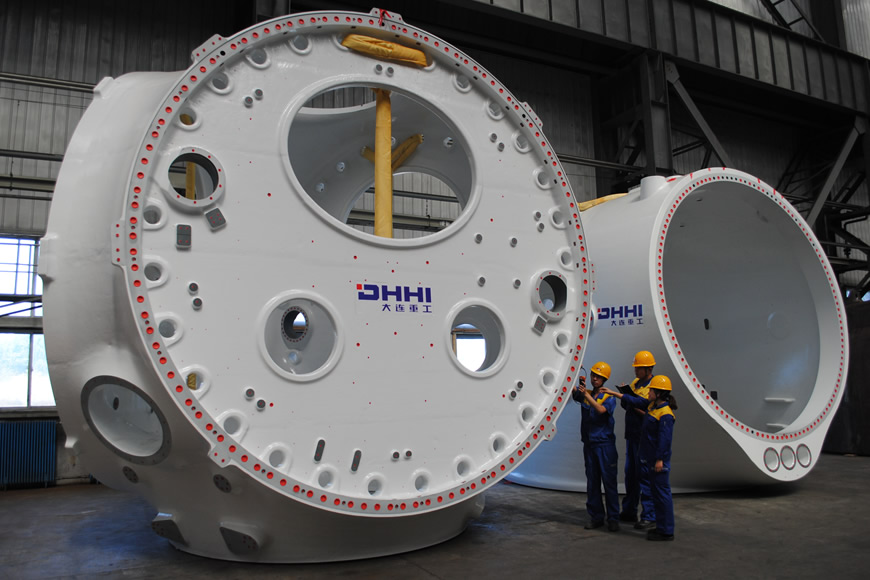 风电球铁铸件方面,大连重工球墨铸铁风电产品年产能10万吨,拥有铸造生产线8条,产品覆盖0.85至12兆瓦等多种机型(轮毂、弯头、底座等),月产海上风电铸件产品70套以上,率先成功研制出3至4.5 兆瓦、5至7兆瓦、8至10 兆瓦、10至12 兆瓦等多种风电机型铸件产品。